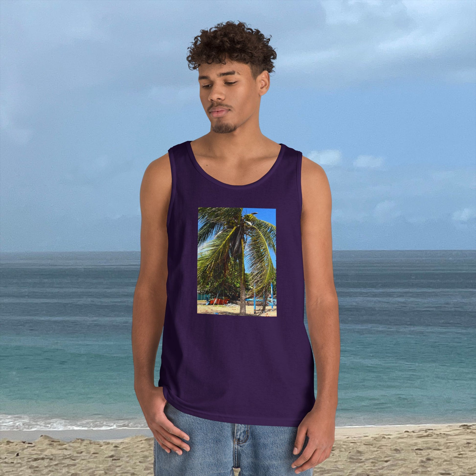 A classic-fit tank top featuring an authentic original photo of a shoreline in the Caribbean. This tank top gives off a relaxed and beachy vibe, perfect for casual outings or lounging. Ideal for those who love the beach or want to reminisce about a tropical vacation. Great for summer wear, beach trips, cruises, nature walks, the Gym or coastal themed events. Ideal for layering this unisex tank top is designed for all occasion all year round.