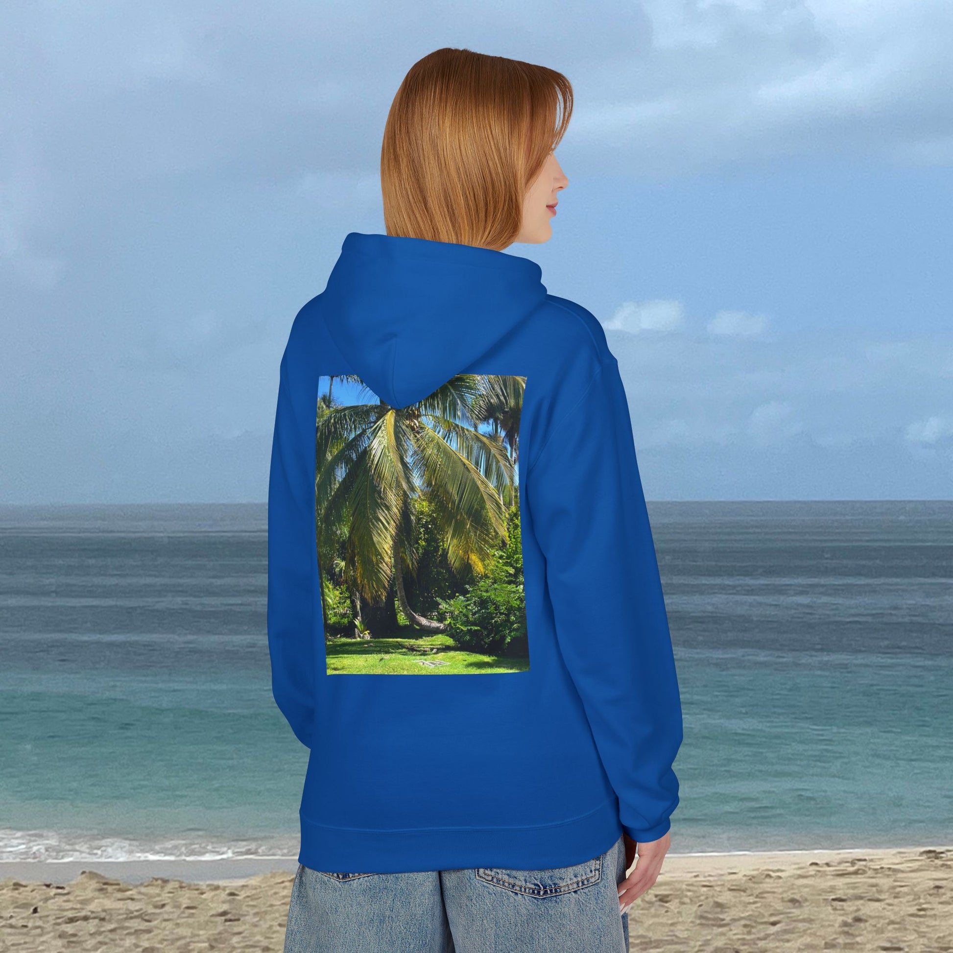 This "Just Chilling" fleece midweight hoodie is more than just a comfortable layer-it's a portal to a more peaceful state of mind. The original serene landscape printed on the back instantly soothes the senses, while the soft, cozy fabric wraps you in a hug of tranquillity. Slip it on anytime you need to press pause and find your Zen. Perfect for anyone who values self-care and mental wellbeing. Whether you're a high-powered executive, a busy parent, vacationer, cruiser, hiker or simply someone who wants to slow down and savour life's simple pleasures, this hoodie will become your go-to for everyday relaxation.