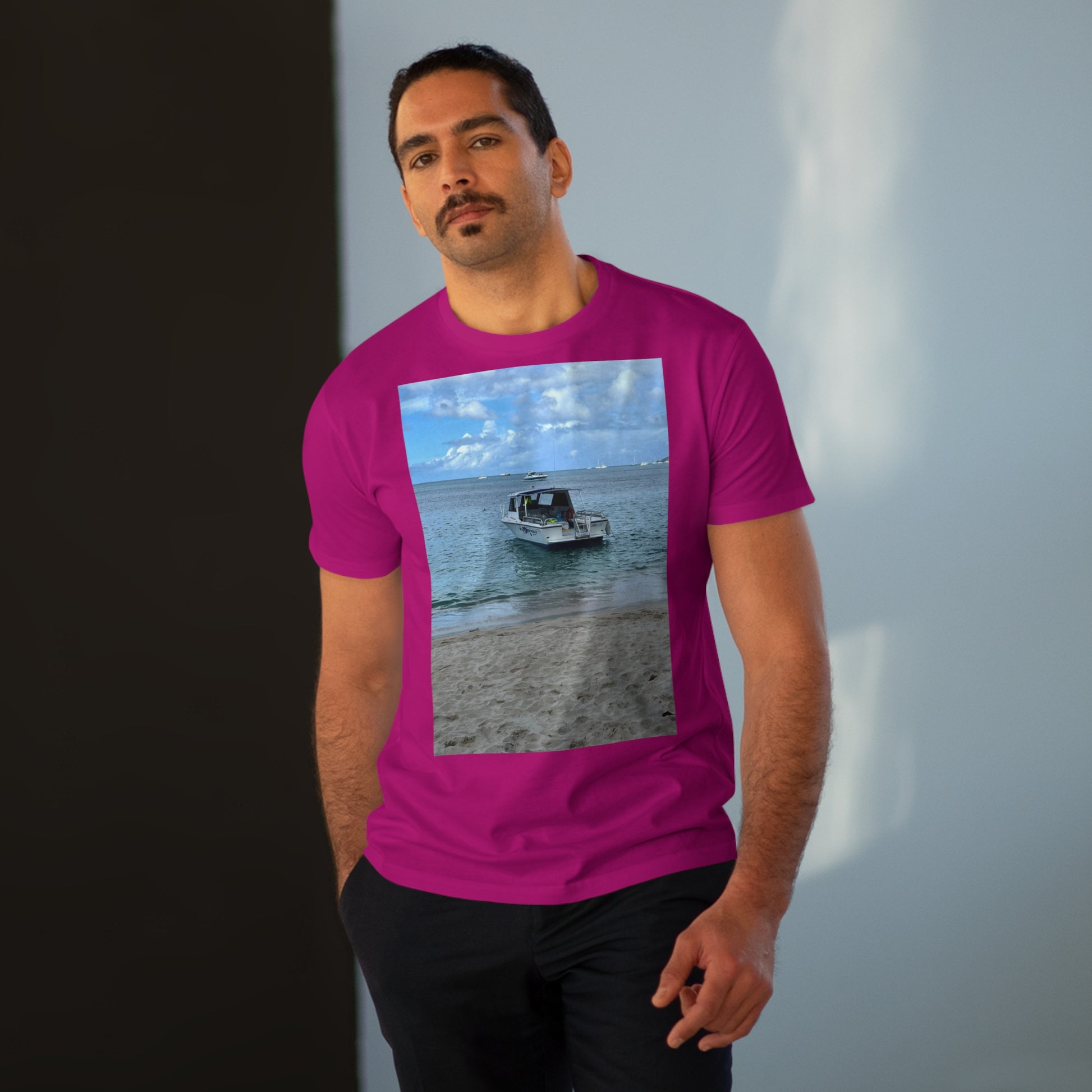 Escape the ordinary with the Men's Modern Fit T-Shirt - a stylish, comfortable essential that elevates your casual wardrobe. Crafted with a modern, relaxed fit and a stunning Caribbean-inspired nature print, this tee is designed to help you embrace the carefree spirit of island life. It features a thin elasticated rib collar, side seams and double needle stitching on sleeves and hem. Ideal for men, gifts for him, summer, Gym, Walking, Jogging, Club, Party, Work, Bar-B-Que as a year-round vibrant wearable.